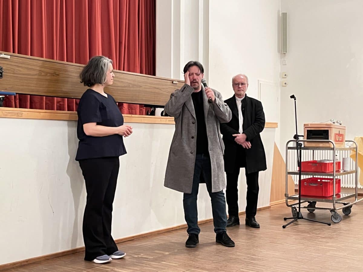 Mit diesem Format kamen Menschen unabhängig von Herkunft, Einkommen oder religiöser Zugehörigkeit an einen Tisch, und zwar niedrigschwellig, würdevoll und gemeinschaftlich. Kurz vor dem Essen begrüßte die Initiatorin Güneş Seyfarth die Gäste zusammen mit dem Hausherr, Pater Alfons Friedrich SDB, der den Saal zur Verfügung stellte. Volkan Türlü erzählte noch die Besonderheiten vom Fasten mit Aussagen von muslimischen Mystikern Yunus Emre und lud mit einem Gebetsruf zum Fastenbrechen ein. Beim Dinner wurden dann liebevoll vom Community Kitchen Team zubereitete Gerichte serviert.