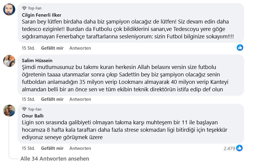Fenerbahçe teknik direktörü ve yönetim kurulu üyeleri, maç sonrası sosyal medya üzerinden gelen tepkilerin ve tehdit mesajlarının kabul edilemez olduğunu belirtti. Futbolcuların güvenliğinin kulüp için öncelikli olduğu vurgulandı ve gerekli yasal adımların atılacağı ifade edildi.